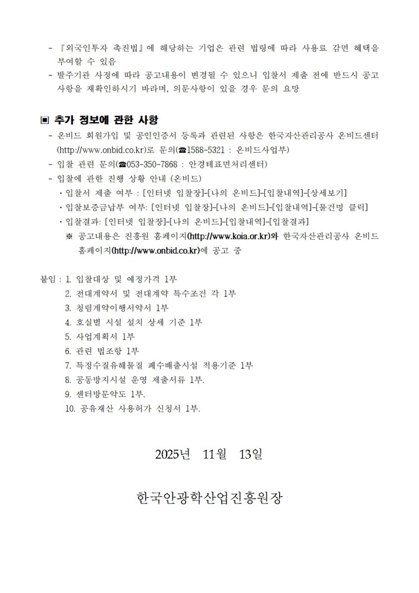 [ 종료 ] 2025년 7차 안경테표면처리센터(지식산업센터) 입주기업 모집공고 안경테표면처리센터 작성일2025.11.13 공고기간2025-11-13 ~ 2025-11-20 URL 링크 조회수105 (임대공고문) 안경테표면처리센터 2025년 7차.hwp 31697_붙임서류.zip 목록으로 이전글 「불용물품(장비) 일괄 매각」 입찰공고 다음글 2025년 8차 안경테표면처리센터(지식산업센터) 입주기업 모집공고