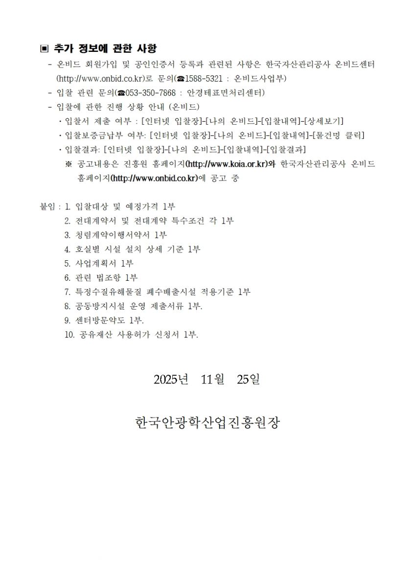 [ 종료 ] 2025년 8차 안경테표면처리센터(지식산업센터) 입주기업 모집공고 안경테표면처리센터 작성일2025.11.26 공고기간2025-11-25 ~ 2025-12-02 URL 링크 조회수57 (임대공고문) 안경테표면처리센터 2025년 8차.hwp 55163_붙임서류.zip 목록으로 이전글 2025년 7차 안경테표면처리센터(지식산업센터) 입주기업 모집공고 다음글 다음글이 없습니다.
