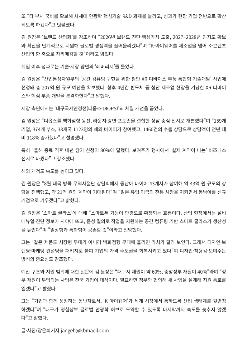 기사 바로 보기 : “대구 안경이 차세대 첨단 디바이스 산업 선도할 것”