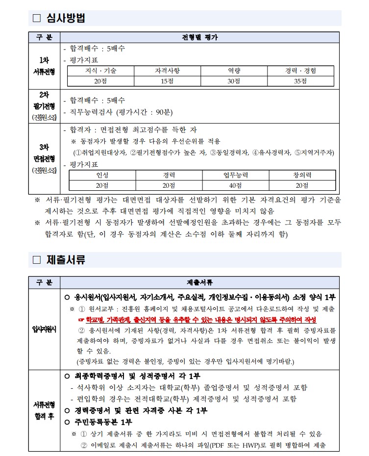 [ 진행중 ] 2026년 상반기 제1차 공개채용 재공고 관리자 작성일2026.01.15 공고기간2026-01-15 ~ 2026-01-29 URL 링크 조회수82 공고_2026년 상반기 제1차 재공고.pdf 직무기술서_2026년 상반기 제1차 재공고.pdf 입사지원서_2026년 상반기 제1차 재공고.hwp 72158_채용이의신청서.hwp 목록으로 이전글 2026년 상반기 제1차 공개채용 공고 다음글 다음글이 없습니다.