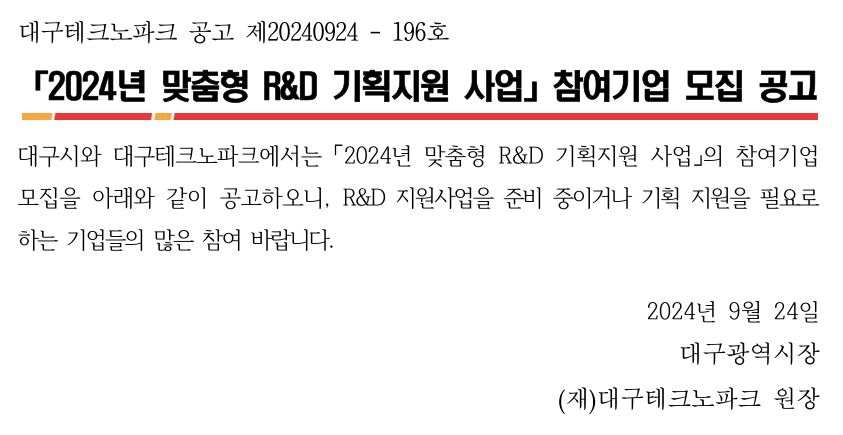 [대구신용보증재단] 2024년 2차 중소기업 경영안정자금(이자지원) 융자지원계획 변경 공고(예산 소진시까지)