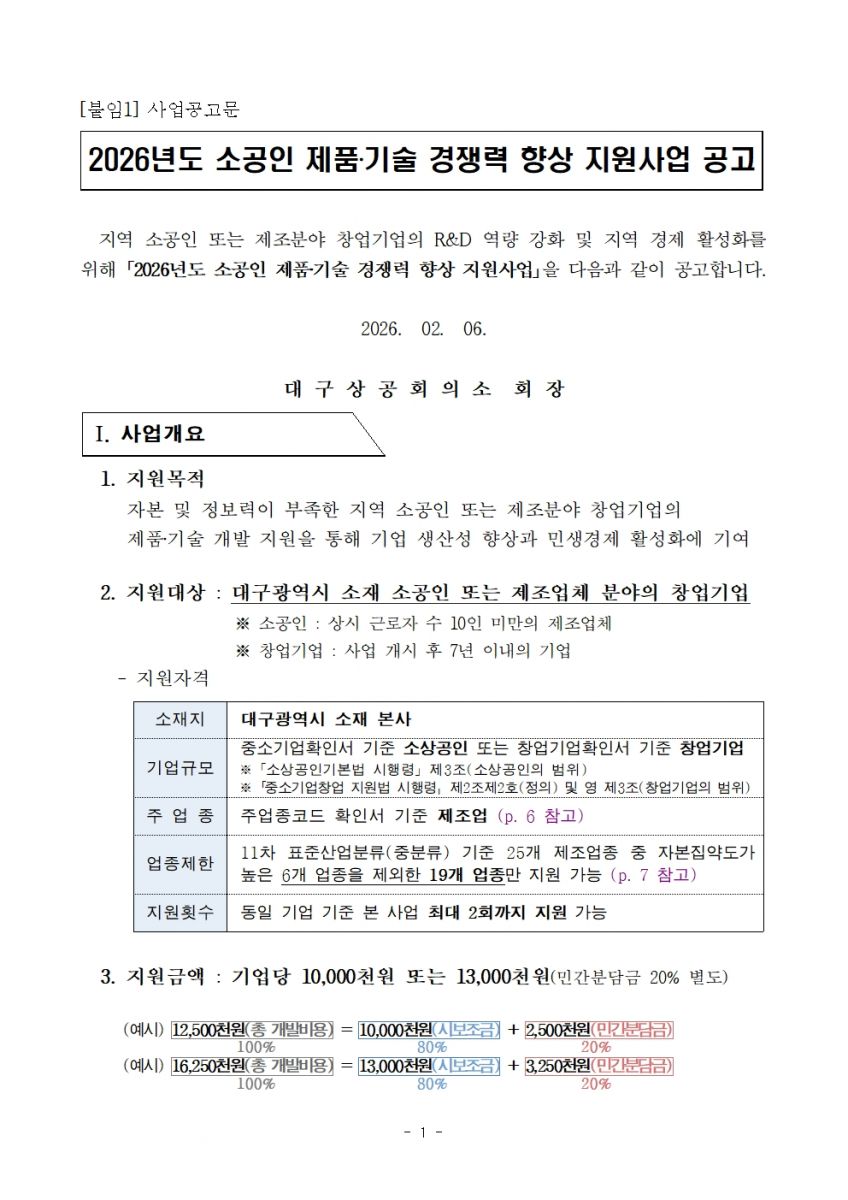 [대구광역시] 2026년 중소기업경영안정자금 지원계획 공고(예산 소진시까지)