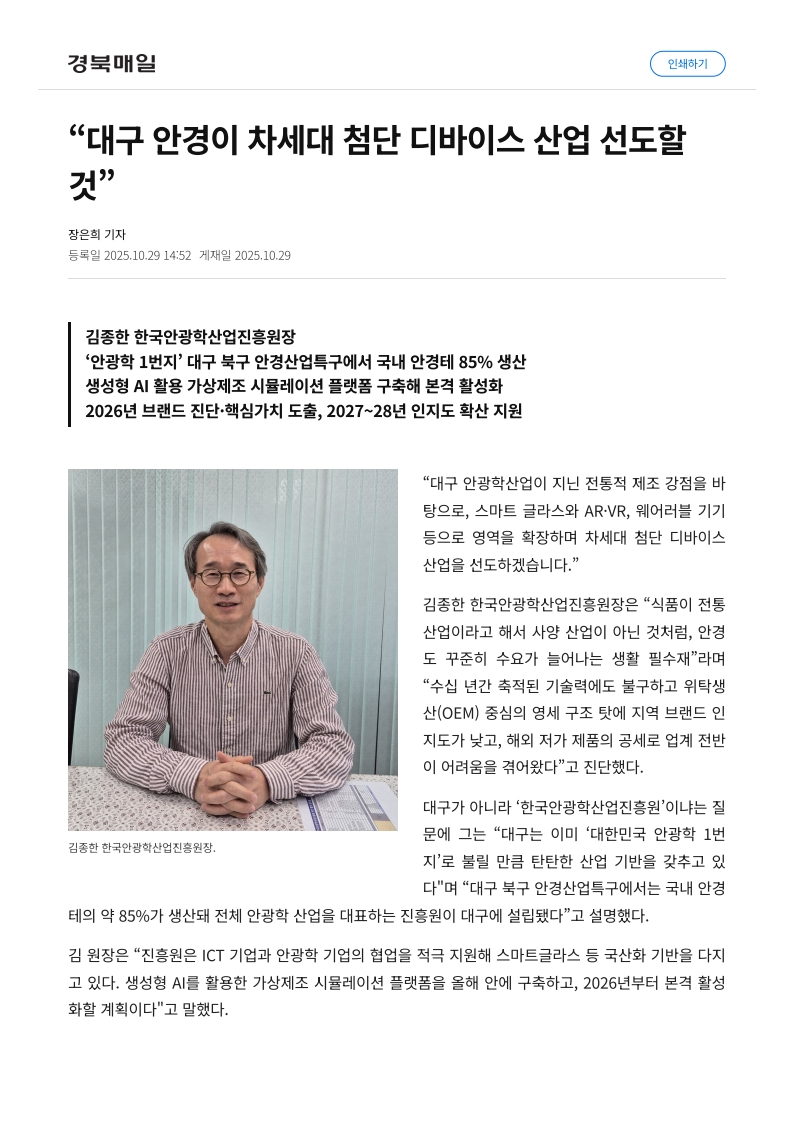 [경북매일] “대구 안경이 차세대 첨단 디바이스 산업 선도할 것”
