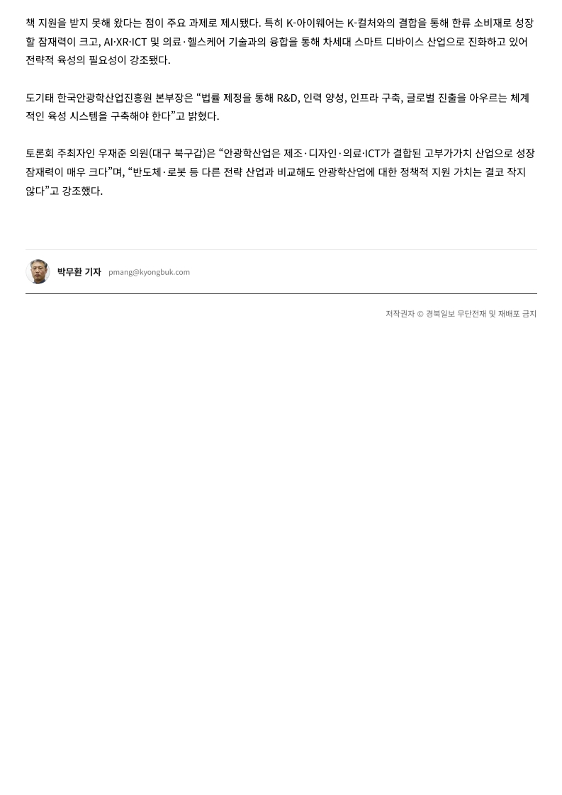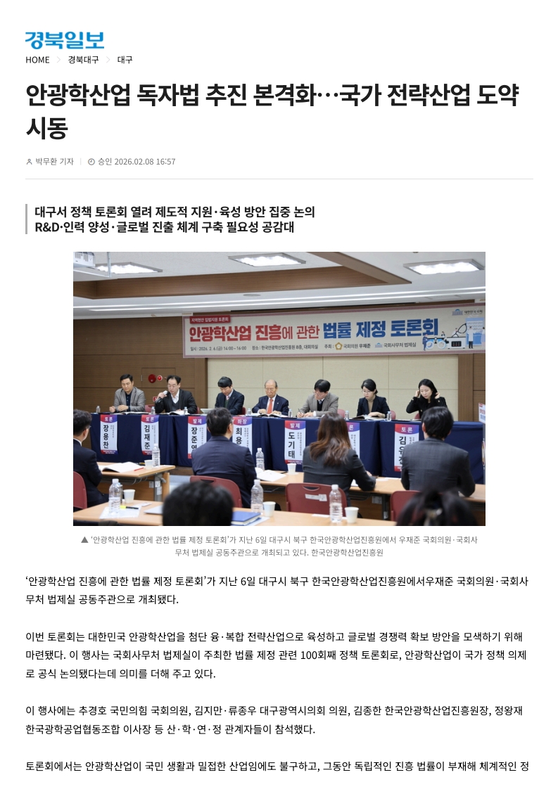 [경북일보] 안광학산업 독자법 추진 본격화…국가 전략산업 도약 시동